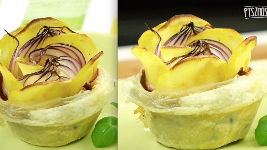 Poniżej zobaczysz przepis na przyrządzenie niezwykłych kwiatków z ciasta francuskiego z ziemniakami i czerwoną cebulą.