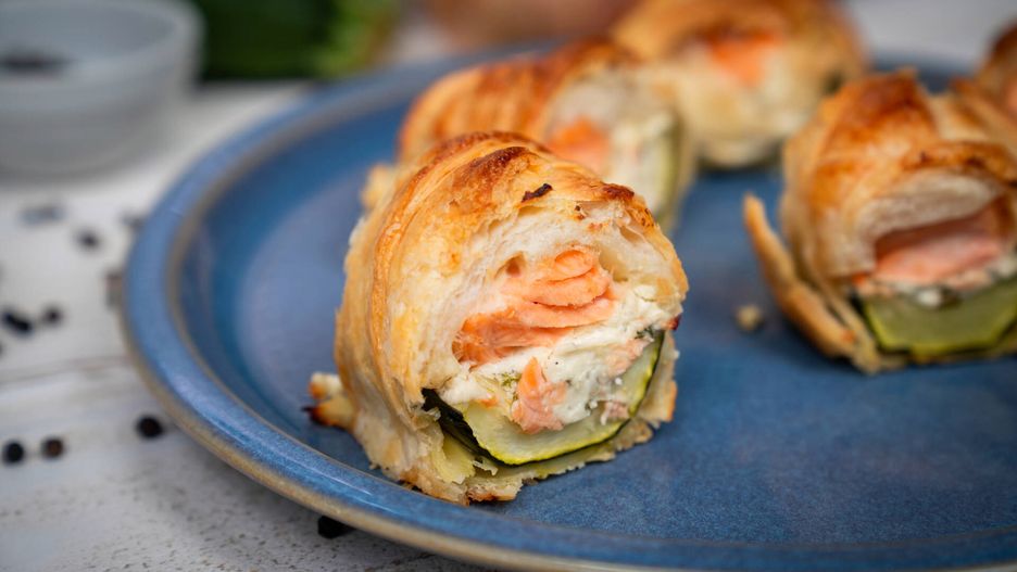 Pyszne łódeczki z cukinii z łososiem i śmietankowym serkiem w chrupiącej otoczce z ciasta francuskiego to prosty przepis na efektowną przekąskę. Prezentuje się naprawdę świetnie!