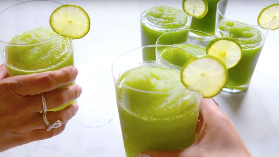 1. Do blendera włóż sok z limonki, syrop z agawy, liście mięty, skórkę z limonek oraz biały rum. Zmiksuj wszystko na gładką i jednolitą masę.