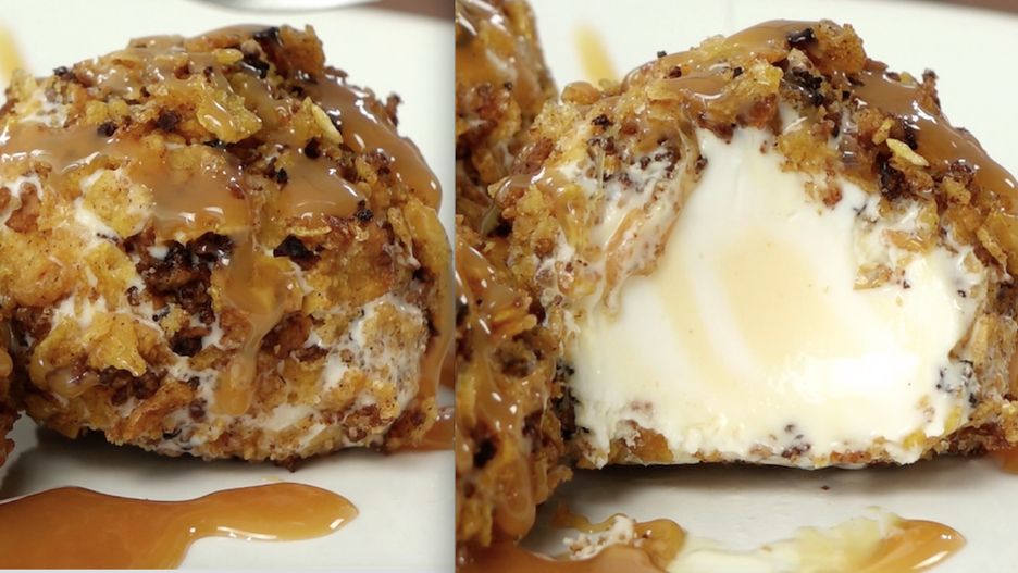 Lody w panierce z płatków kukurydzianych, polane polewą