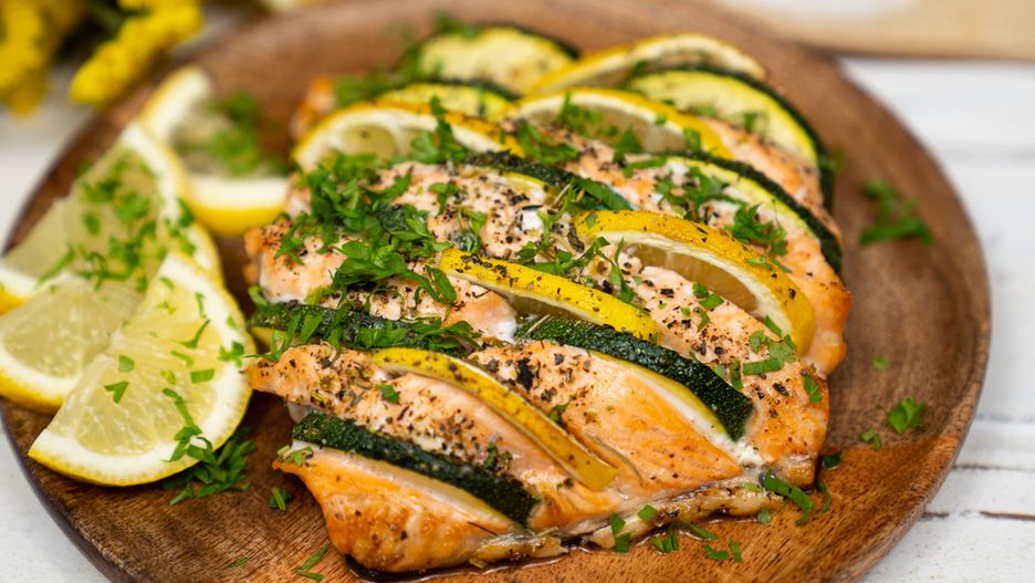 Łosoś caprese z cukinią i cytryną - kolorowy i zdrowy obiad na lato
