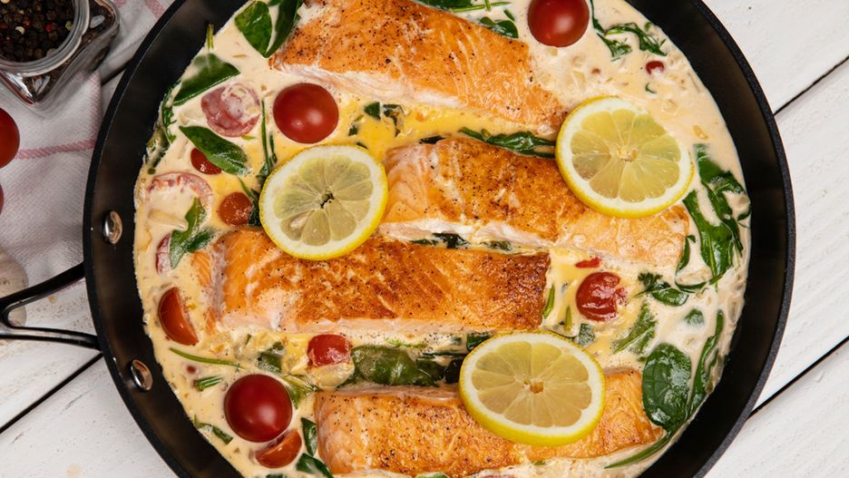 Łosoś w mleczku kokosowym ze szpinakiem i pomidorkami koktajlowymi to idealna kombinacja smakowa. Co więcej, całe danie przygotujesz na jednej patelni. W szybki, prosty i smaczny sposób 😉
