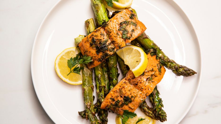 Łosoś w towarzystwie szparagów