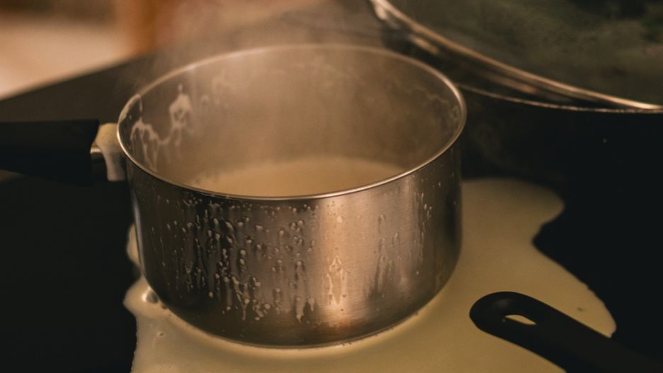Gotowanie mleka wymaga uwagi. Niestety, brak doświadczenia w kuchni często kończy się szorowaniem garnka ze spalenizny. Dlaczego mleko tak łatwo przywiera? Wszystkiego winne są białka, które koagulują pod wpływem wysokiej temperatury. Osadzają się na dnie garnka, co prowadzi do przypalenia. Aby temu zapobiec, najlepiej gotować mleko na średnim ogniu, czyli podgrzewać je bardzo stopniowo i cały czas mieszać.