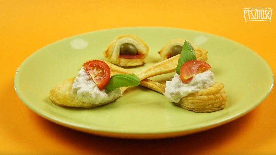 Łyżki z ciasta francuskiego z pyszną pastą i oliwkową niespodzianką