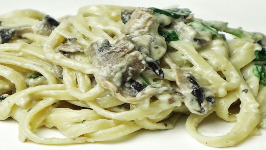Makaron ze szpinakiem i pieczarkami w sosie śmietanowym - kiedy go spróbowałam, zakochałam się w nim