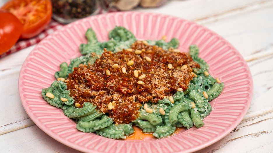 Spirulina w tym przepisie zadziała jak magiczna różka, zamieniając zwykły makaron w przysmak bagiennego potwora. Nie mogło zabraknąć również sosu pomidorowego marinara, czyli jednego z najprostszych i najpyszniejszych dań kuchni włoskiej. To świetny pomysł na halloweenowy obiad. Wprowadzi w nastrój jeszcze przed pojawieniem się na stole tematycznych przekąsek.