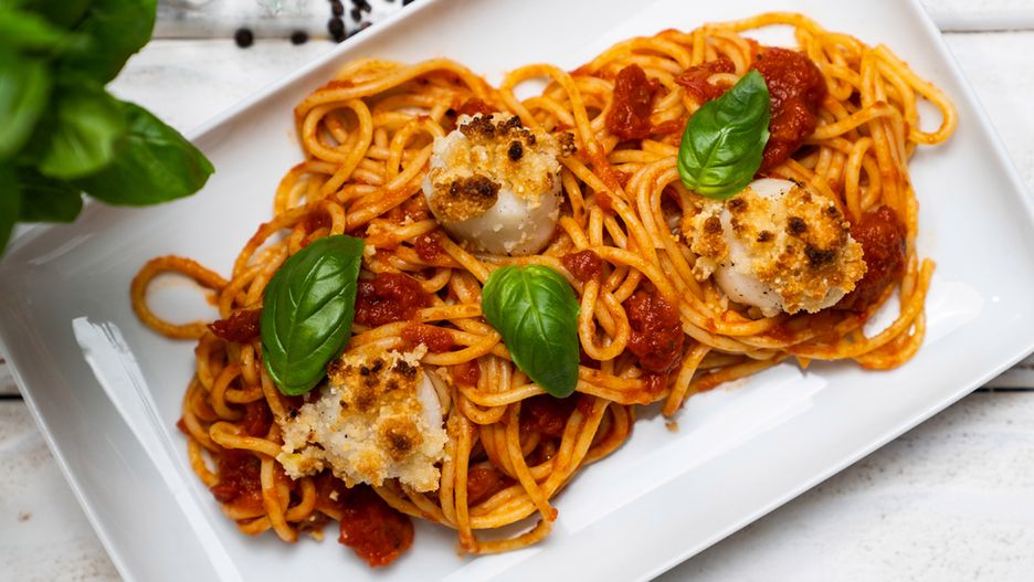 Makaron spaghetti z przegrzebkami i sosem basilico to gotowa receptura na udany obiad dla całej rodziny. Kiedy go przygotowujemy, znika z talerzy w mgnieniu oka!