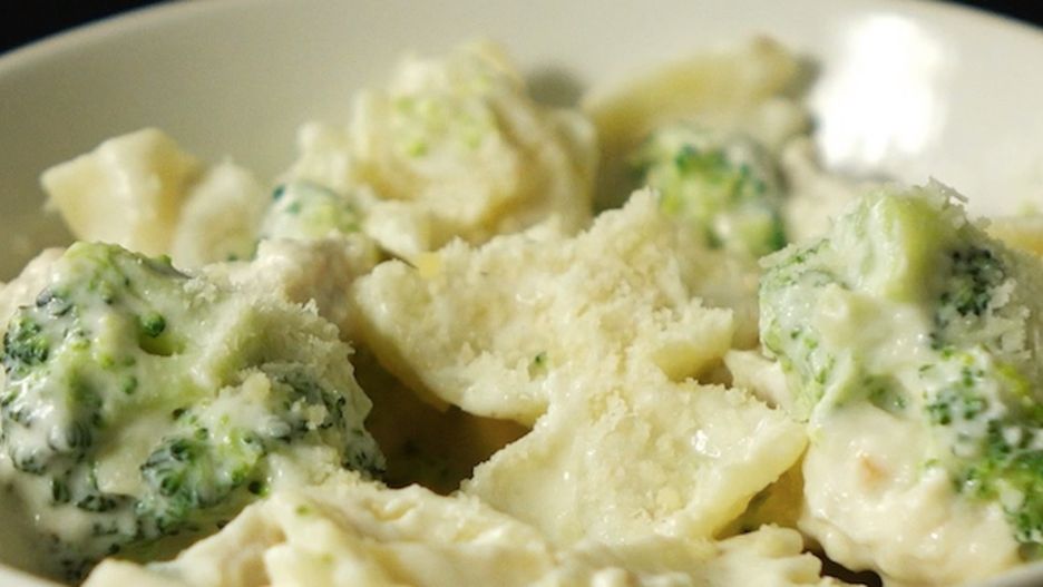 Makaron w sosie śmietanowo-serowym z brokułem i kurczakiem