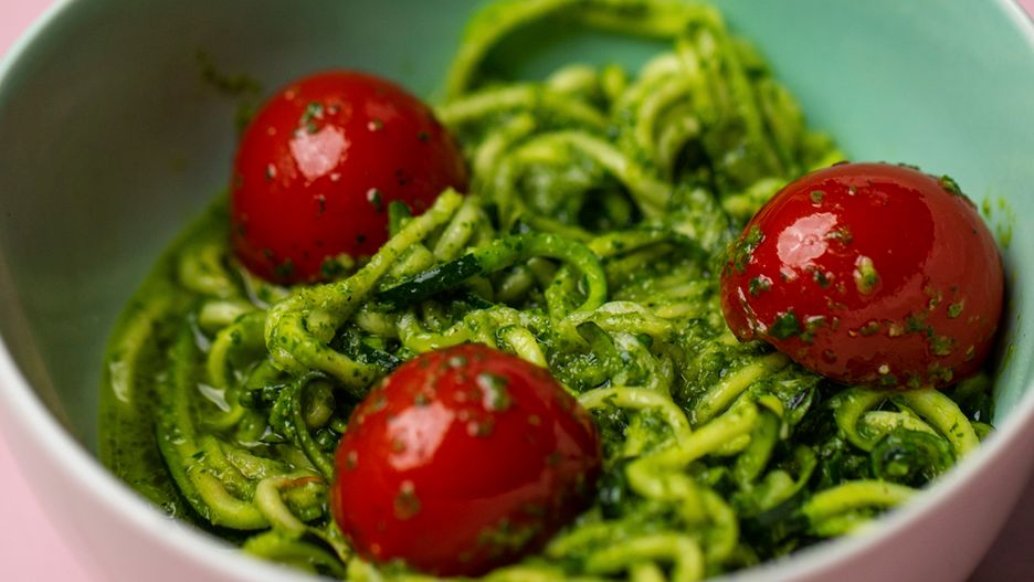 Makaron z cukinii z zielonym pesto