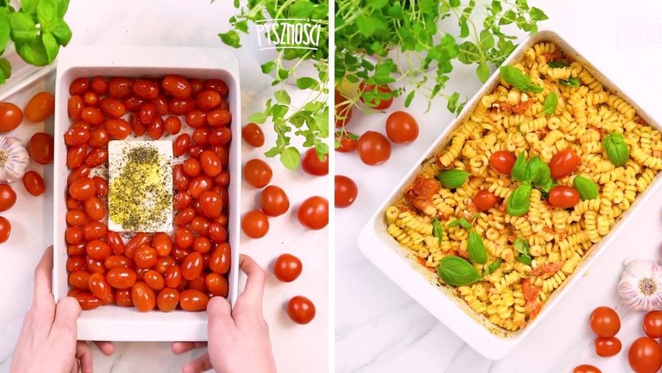 Błyskawiczny makaron z fetą i pomidorkami to gotowa receptura na pyszny obiad dla cale rodziny. Kiedy go robimy, znika z talerzy w mgnieniu oka!