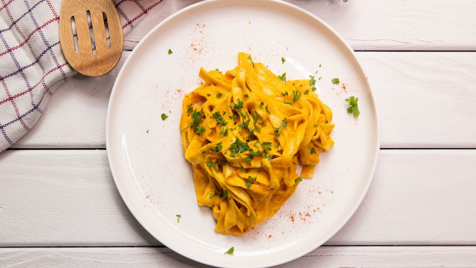 Makaron z sosem z batatów