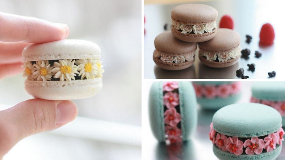 Jeśli uwielbiasz makaroniki, mam coś co z pewnością Ci się spodoba. Oto genialne smakołyki w uroczym zestawieniu z kwiatami.