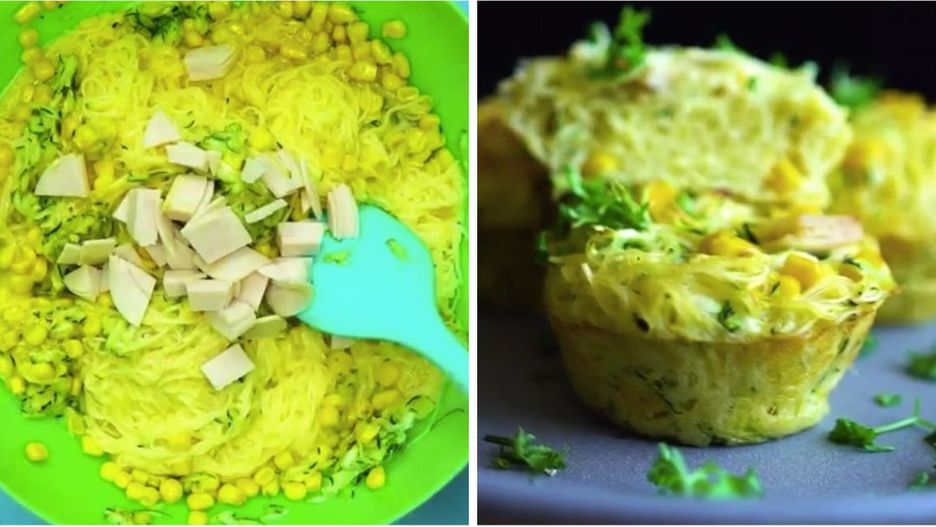 Co jeszcze znajdziesz w naszych makaronowych babeczkach? M.in. cukinię, szynkę i kukurydzę!