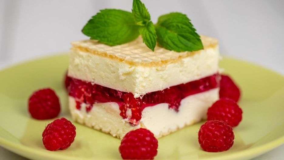 Malinowe ciasto na zimno w waflu