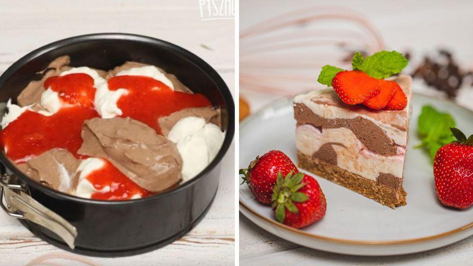 Marmurkowe ciasto bez pieczenia to idealna propozycja na ciepłe dni. Jego przygotowanie zajmie Ci 5 minut, a efekt końcowy przerasta najśmielsze oczekiwania. Proste połączenie masy ze śmietanki i serka przełamują pyszne truskawki.