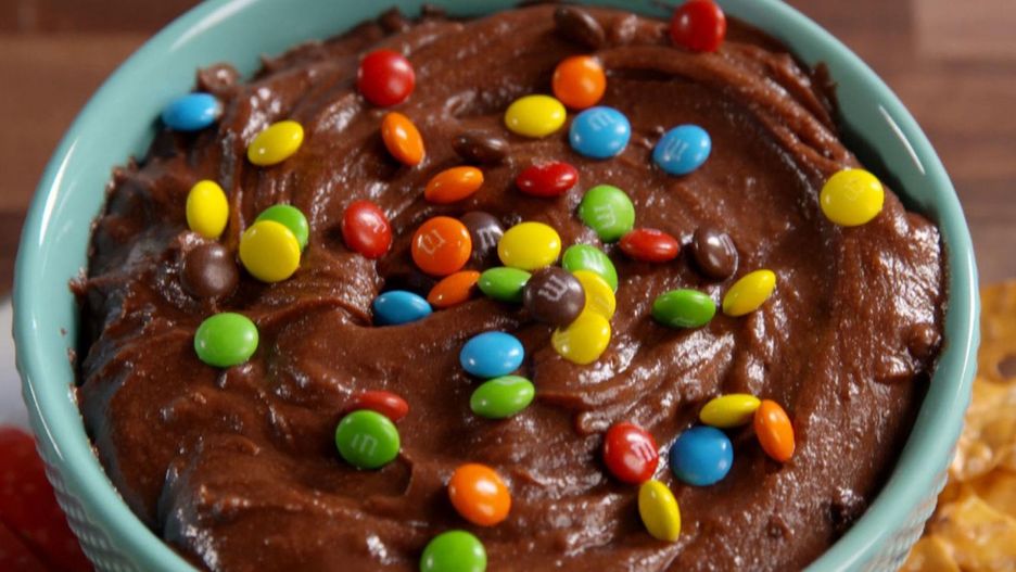 2. Na koniec do miski wsyp M&M'sy. I gotowe! Podawaj z herbatnikami, preclami lub jabłkami.