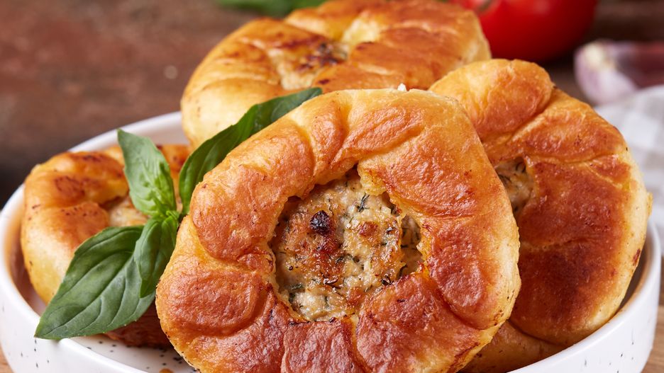 Mięciutkie bułeczki z mięsnym farszem. Smakują tak, że trudno się oprzeć