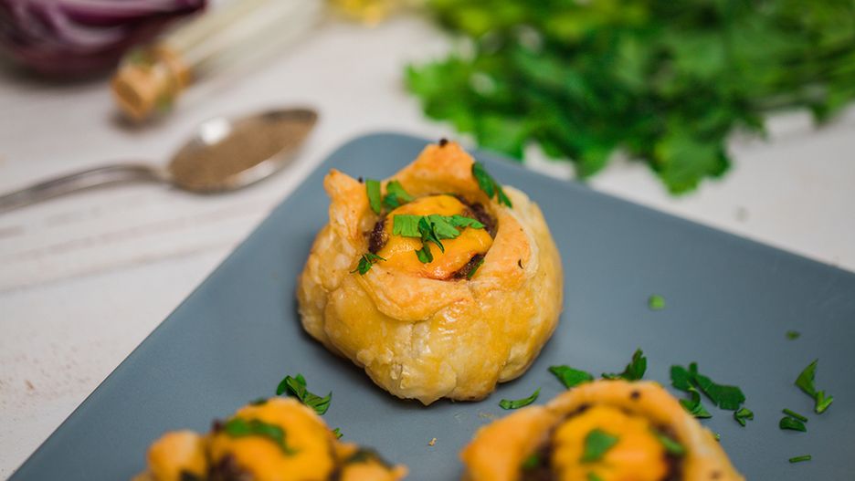 Mięsne sakiewki z ciasta francuskiego z dodatkiem cheddara. I nie trzeba nic więcej, aby przygotować idealną przekąskę na każdą okazję.