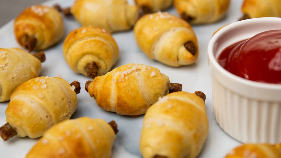 Nasze rogaliki przygotowaliśmy z roślinnymi kabanosami marki Dobra Kaloria.