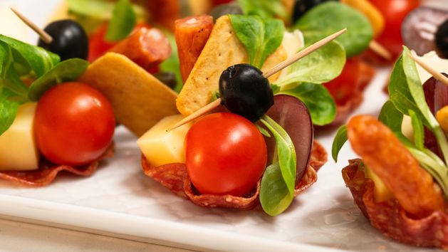 - My tym razem postawiliśmy na kombinację: camemberta, żółtego sera, korniszonów, kabanosów, winogrona, krakersów pomidorków koktajlowych i roszponki. Każdy znajdzie tu coś dla siebie.
