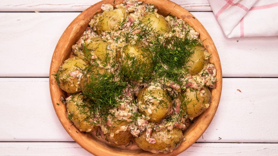 Młode ziemniaki w śmietanowej omaście to nasz przepyszny hit majowy. Przygotowujemy je co roku, kiedy tylko w sklepach pojawiają się młode ziemniaki. Tej kombinacji po prostu nie można odmówić!