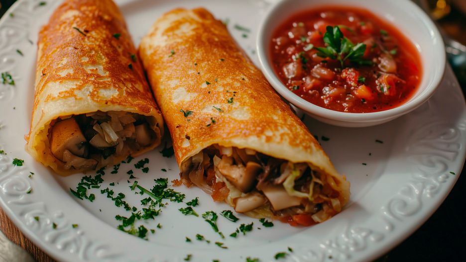 Krokiety podaje się zwykle do zupy, to te są tak pyszne, że nadają się na samodzielne danie. Wystarczy wcześniej usmażyć naleśniki, a potem nadziać je pysznym farszem na bazie kapusty i pieczarek. Na koniec delikatnie je obsmażamy, bo to właśnie różni krokiety od naleśników. Dzięki temu są bardziej chrupiące.