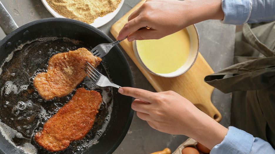 Po wyrobieniu mięsa należy je wybić. To oznacza, że mięso należy kilka razy rzucić do miski lub z wysokości około 30 cm na blat. Następnie formujemy z mięsa zgrabne kotlety o grubości nie większej niż 1,5 cm i doprawiamy je według własnego gustu. Teraz pozostaje już tylko panierować kotlety. Najpierw obtaczamy je w mące, następnie w rozkłóconym jajku, a na końcu w bułce tartej. Jeśli lubisz intensywniejszą panierkę, możesz powtórzyć ten proces.