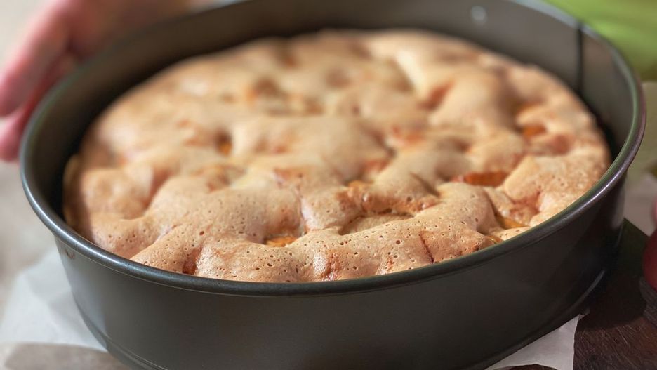 - Przelej ją do tortownicy o średnicy 24 cm, wyłożonej papierem do pieczenia.