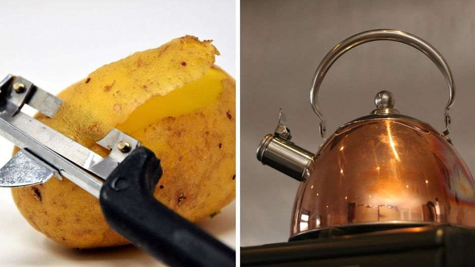 Obierki ziemniaczane są stosowane od lat, jako środek usuwający kamień. Czyste obierki z ziemniaków trzeba wrzucić do czajnika. Następnie zalej obierki wodą. Tak przygotowaną miksturę zacznij gotować. Czynność należy powtórzyć parę razy. Pamiętaj, aby wlać świeżą wodę i zużyte obierki wymienić na nowe.