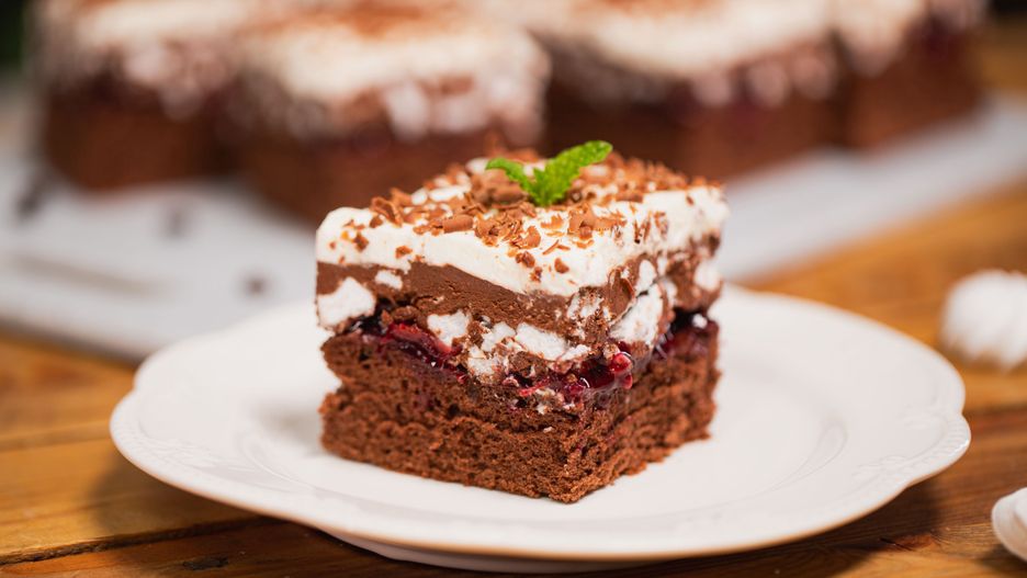 Kostka hiszpańska z czekoladowo-bezowym kremem i wiśniami to przepyszne ciasto warstwowe. Zrobi furorę na rodzinnych spotkaniach, zgarniając tonę komplementów od gości.