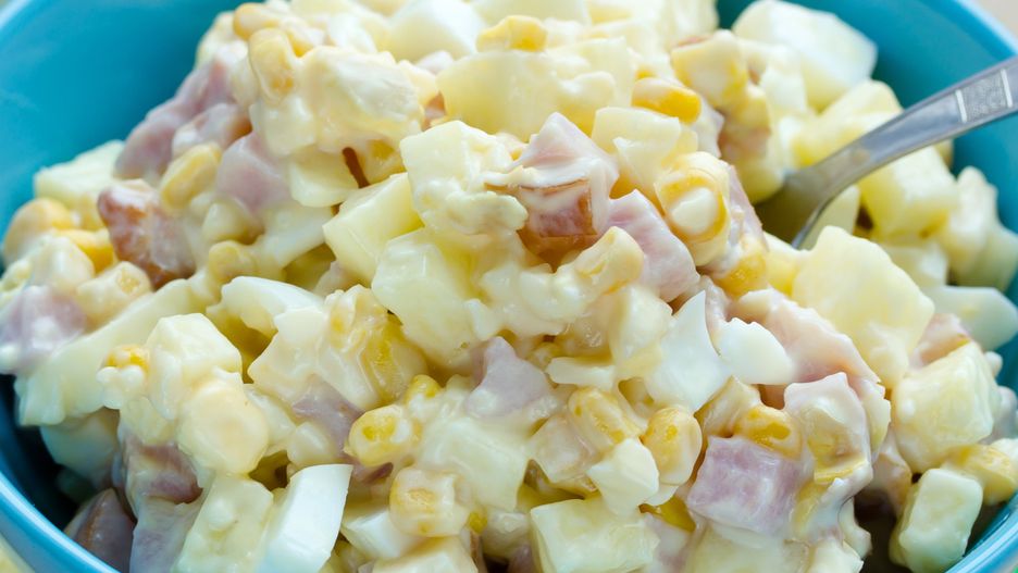 Na pierwszy rzut oka wygląda jak każda inna sałatka warzywna z majonezem. W środku nie ma jednak gotowanych jarzyn, a seler ze słoiczka, pokrojona szynka oraz ananas z puszki, który wprowadza przyjemną, słodką nutę.