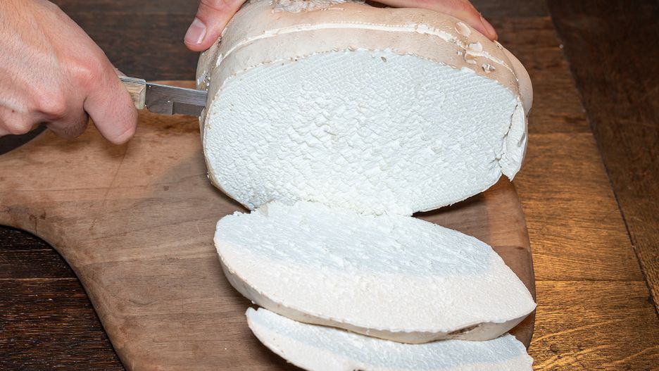 - Obierz purchawicę ją ze skórki, tak jak obierasz pieczarkę. Następnie pokrój ją na plastry o grubości około pół centymetra.