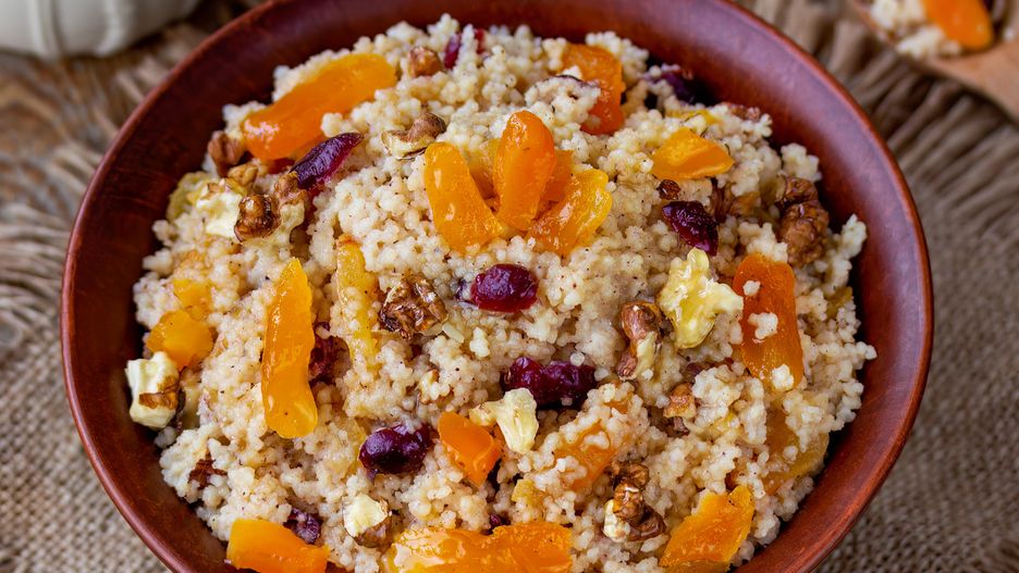 - Śliwki, migdały i orzechy włoskie pokrój na mniejsze kawałki, tak by dobrze wymieszały się z kaszą.