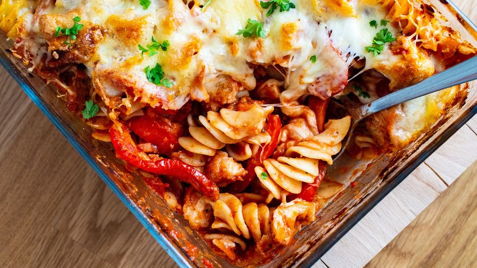 Szybka zapiekanka na piąte – makaron, kurczak i prosty sos
