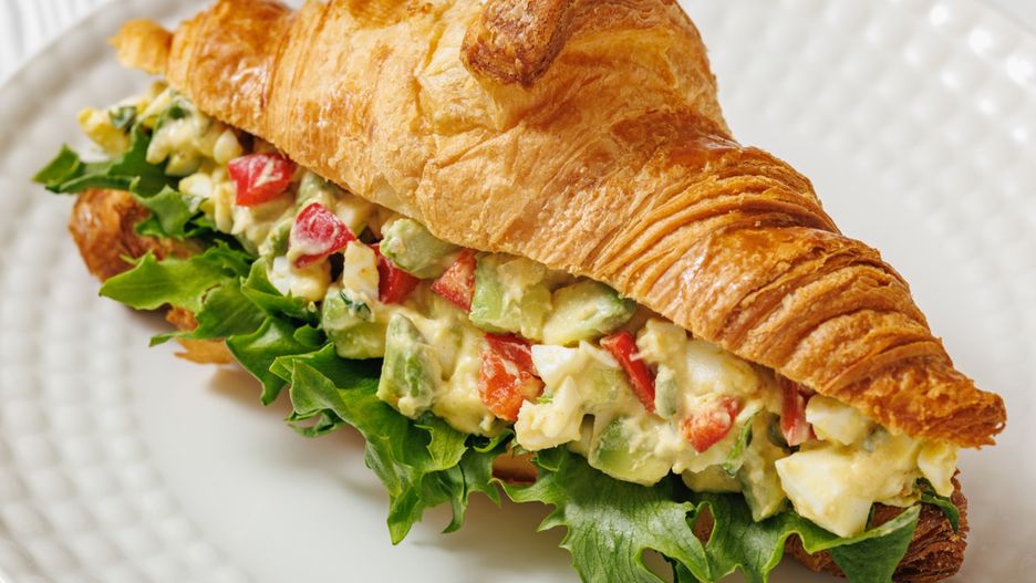 - Świeże croissanty rozetnij wzdłuż, dbając o to, by nie przeciąć ich całkowicie, co ułatwi stabilne podanie potrawy.