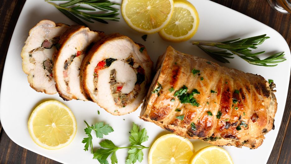 Schab nadziewany grzybami pięknie wygląda na świątecznym stole. Pokrojony w plastry, układa się w apetyczną roladę z widocznym w środku złocistym farszem. Do tego świeże zioła, kilka listków tymianku lub rozmarynu, odrobina sosu z pieczenia – i mamy potrawę, która nie tylko smakuje, ale i wygląda jak z restauracyjnej karty.