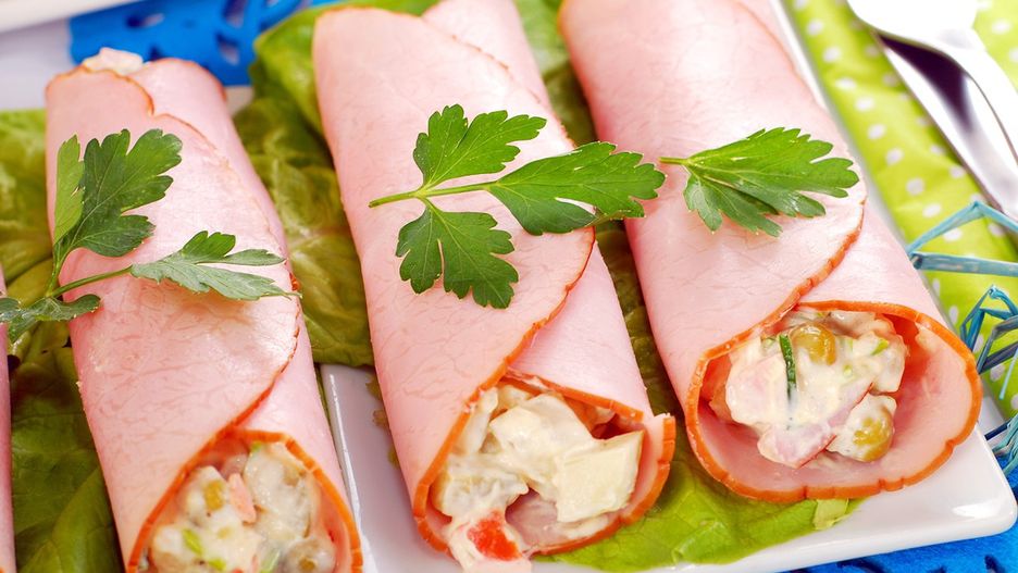 - Najlepiej sprawdzi się szynka konserwowa w kształcie kwadratu. Jest łatwa do zwijania i nie rozpada się. Można też wykorzystać okrągłą szynkę, ale zwróć uwagę, by była jednolita i zwarta.