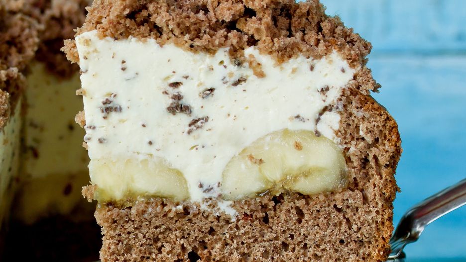 - Na banany wyłóż warstwę kremu śmietankowego, formując lekką "górkę".