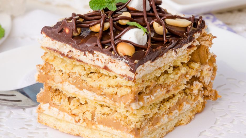 W tym cieście wszystko gra koncertowo, tworząc harmonijną całość. To deser słodki, rozkochujący w sobie miłośników karmelu. Podstawą jest kruchy, maślany spód, który przyjemnie kruszy się pod naciskiem widelca, kontrastując z delikatną bezą, która rozpływa się w ustach. Prawdziwą gwiazdą jest puszysty, aksamitny krem z kajmaku i bitej śmietany. Całość wieńczy lśniąca, czekoladowa polewa z chrupiącymi orzeszkami ziemnymi, dodającymi lekko słoną nutę.