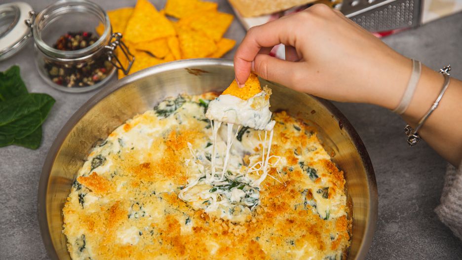 Chrupiące nachosy z dipem szpinakowym. Prosta przekąska do filmu