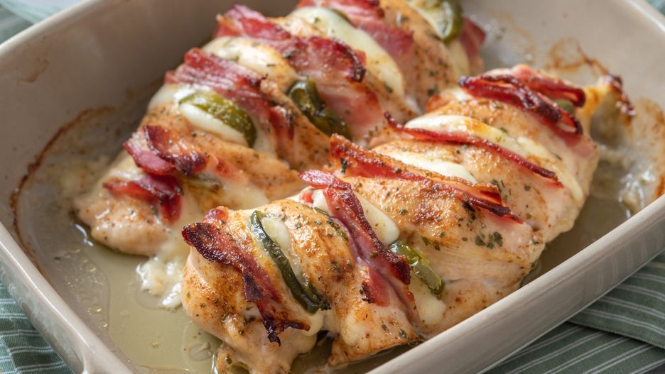 Kluczem jest odpowiednie nacięcie mięsa – głębokie, ale nie do końca – oraz dodatki, które stopią się i połączą z kurczakiem podczas pieczenia. W tej wersji stawiamy na klasyczne, ale wyraziste połączenie: boczek, ser i lekko pikantne jalapeño.