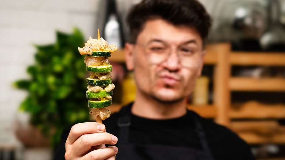 Nadziej kurczaka i cukinią na patyk i upiecz. To najlepsze szaszłyki na szybko, jakie jadłam