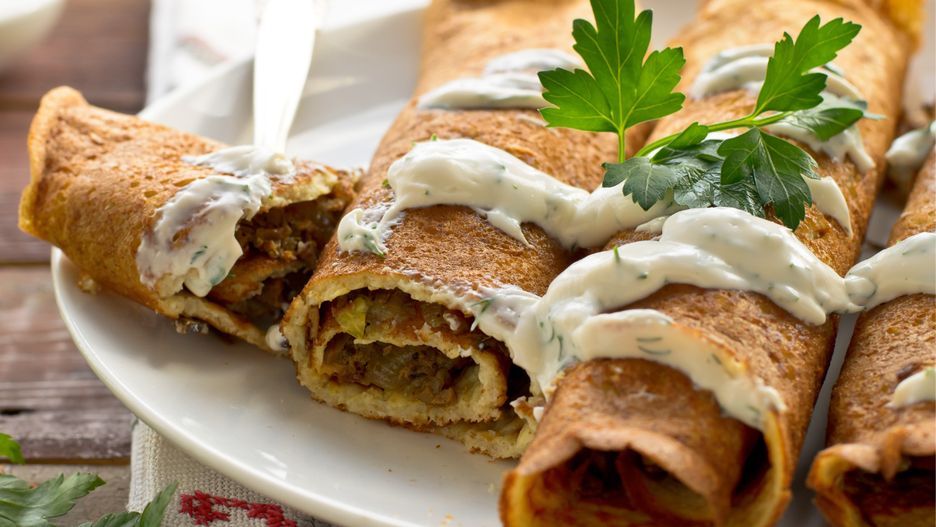 Naleśniki nie zawsze kojarzą się z daniem obiadowym, wszak najczęściej jadamy je na słodko. Niektórzy narzekają, że to kiepski obiad, bo szybko po nim zaczyna znów burczeć w brzuchu. Kiedy jednak podamy je z sycącym farszem na bazie kaszy i twarogu, na długo zaspokoimy głód.