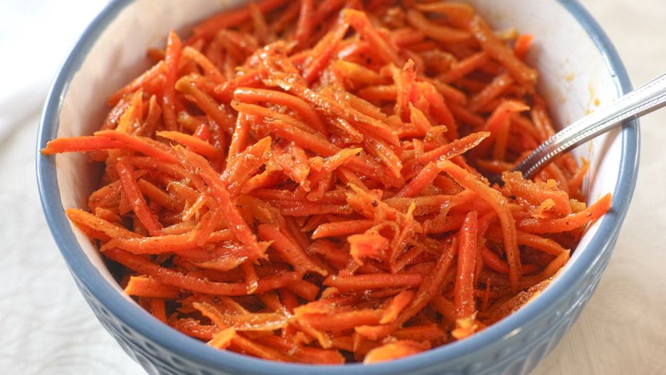 - Polej sosem marchewkę i dokładnie wymieszaj.