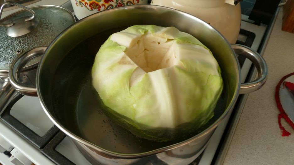 Przygotowania kapusty do gołąbków zacznij od usunięcia zewnętrznych liści, które często są zniszczone, dziurawe czy pożółkłe. Zostaw tylko te zdrowe, a następnie kapustę przełóż do wrzątku tak, by była dokładnie pokryta. Na małej mocy palnika gotuj ją około 9 minut, w trakcie obrócić ją kilka razy. Czas parzenia zależy od tego, jak twarde są liście. Najdłuższego gotowania wymaga dojrzała kapusta, znacznie krótszego młoda.