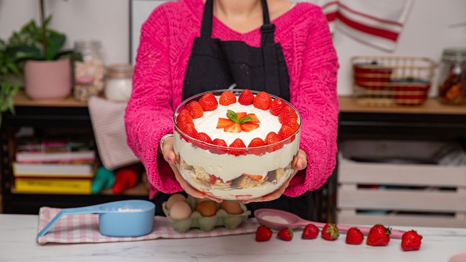 Połączenie truskawek z bitą śmietaną i biszkoptem to sprawdzony przepis na deser. To ciasto zrobi prawdziwą furorę, nie opędzisz się od próśb o dokładkę.