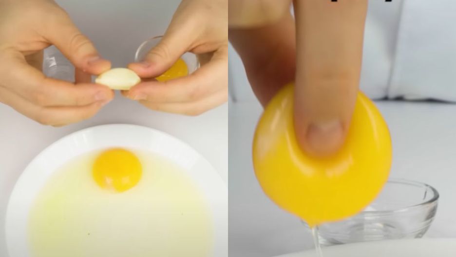 Jak tłumaczy Doktor Pablo, rozdzielenie żółtka od białka trzeba poprzedzić natarciem palców ząbkiem czosnku. Okazuje się, że opuszki pokrywają się wtedy lepką substancją — merkaptanem — i tworzą formę "przyssawki". Teraz możesz spokojnie wbić jajko na talerz i po prostu ściągnąć palcami żółtko. Chwycisz je i przetransportujesz na drugi talerz bez najmniejszego problemu.