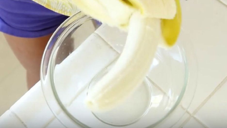 Obierz banana ze skórki.