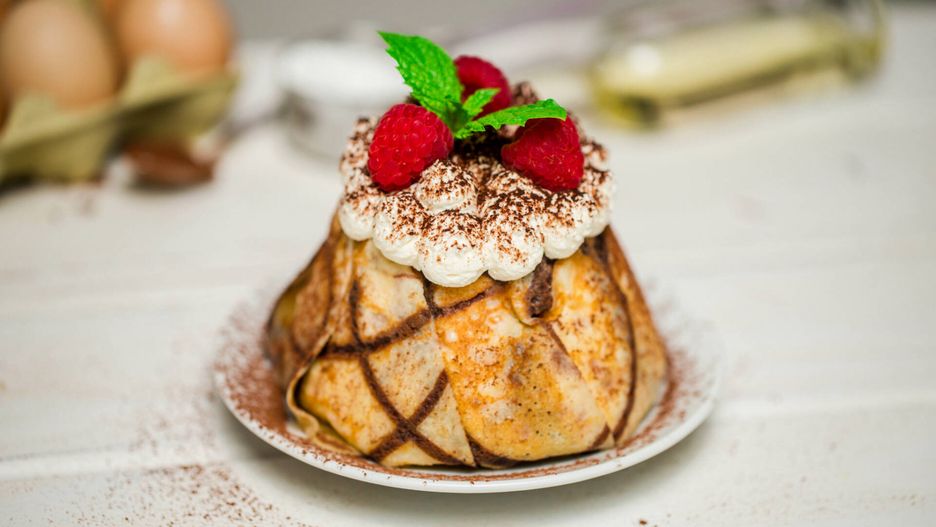 Naleśniki z kakaowym zygzakiem wypełniliśmy po brzegi miksem z mascarpone, malinami i biszkoptem nasączonym w kawie. Takiej kombinacji smakowej nie sposób odmówić!